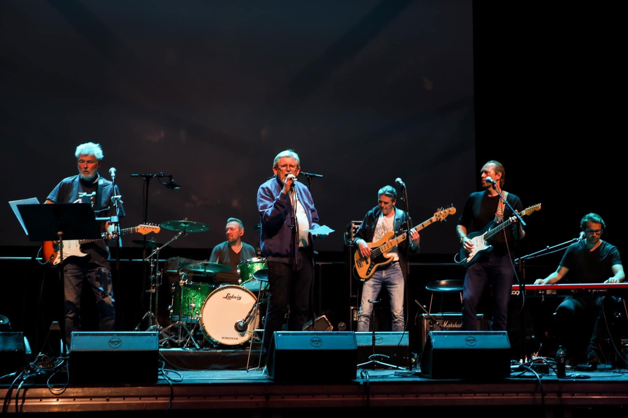 Kjell, Rolf og Erik blir intervjuet fra scenen