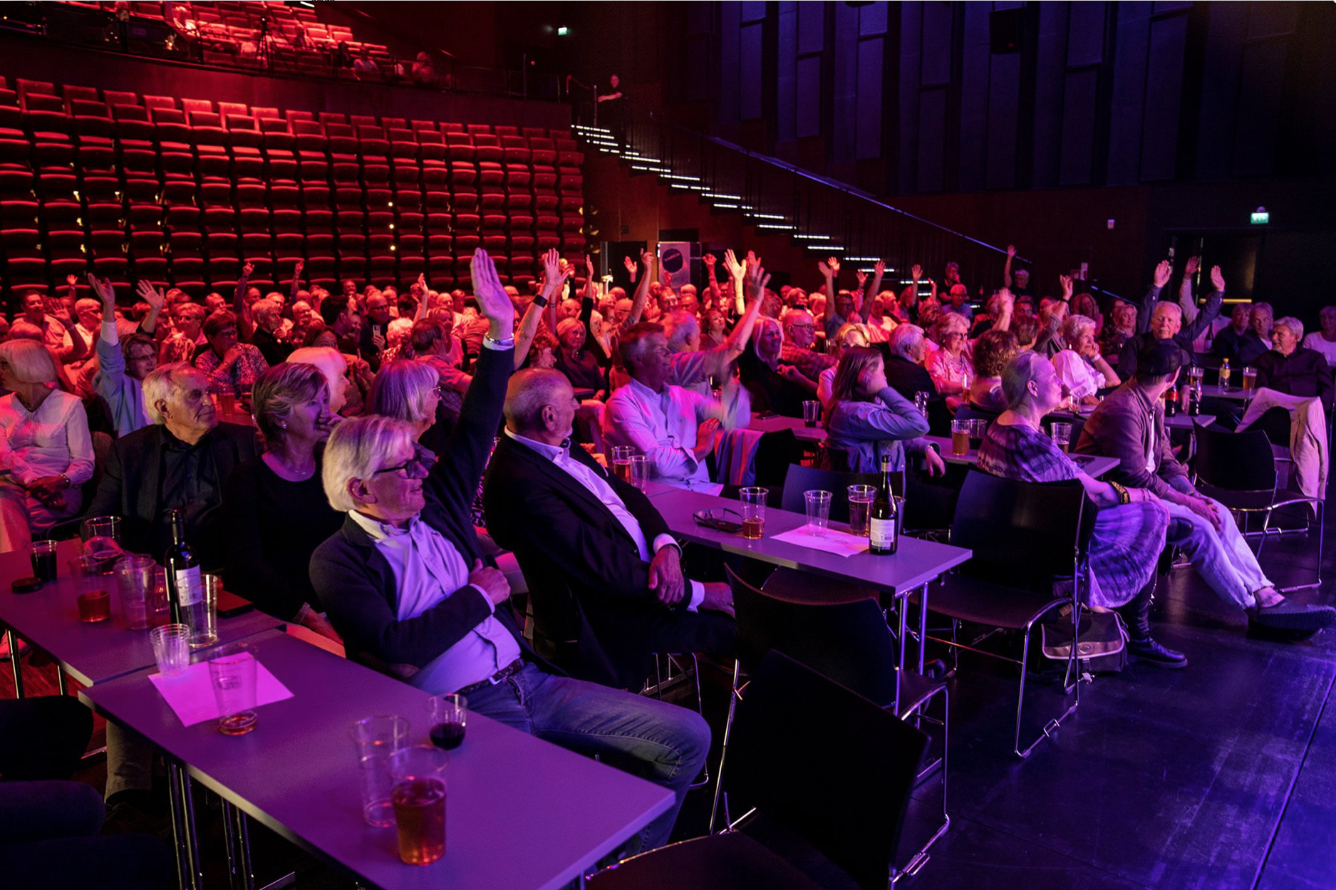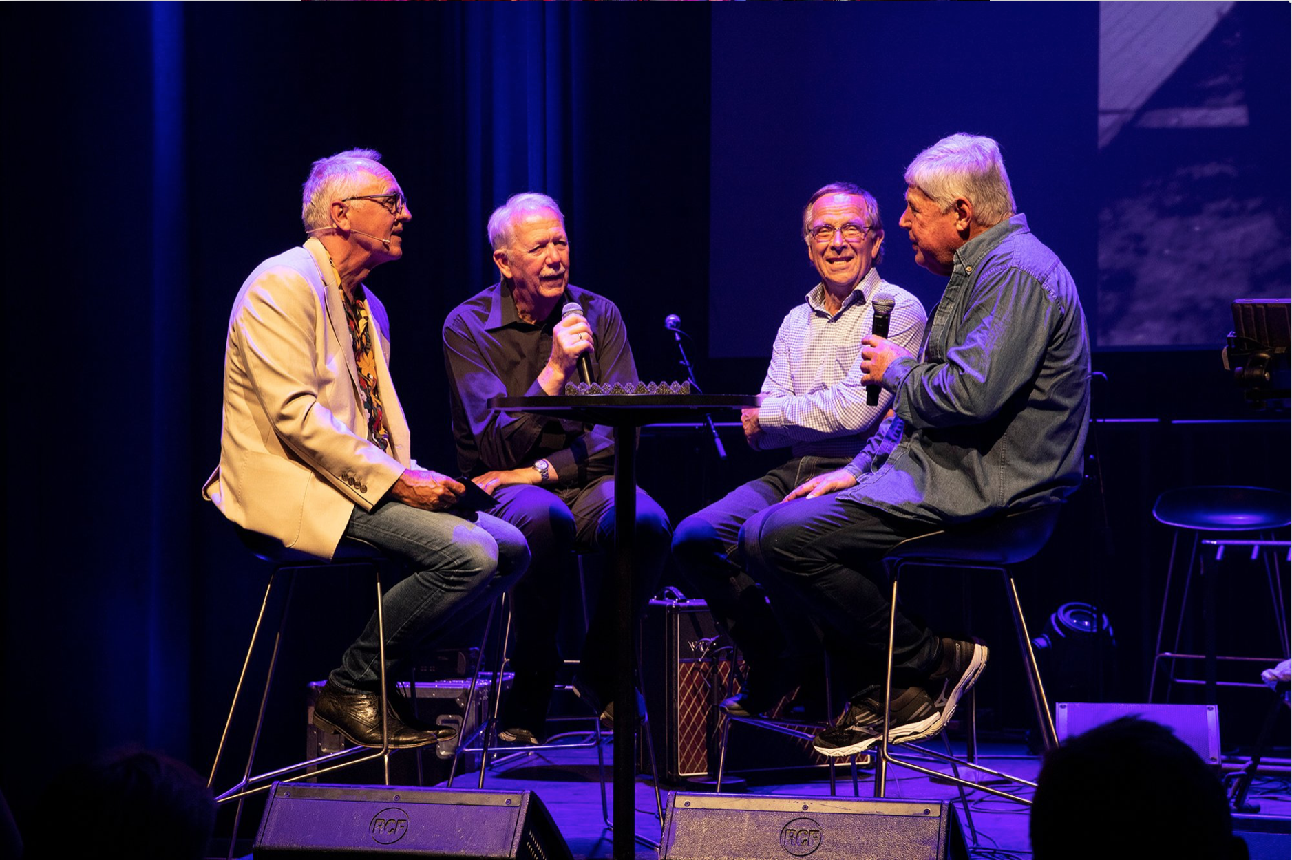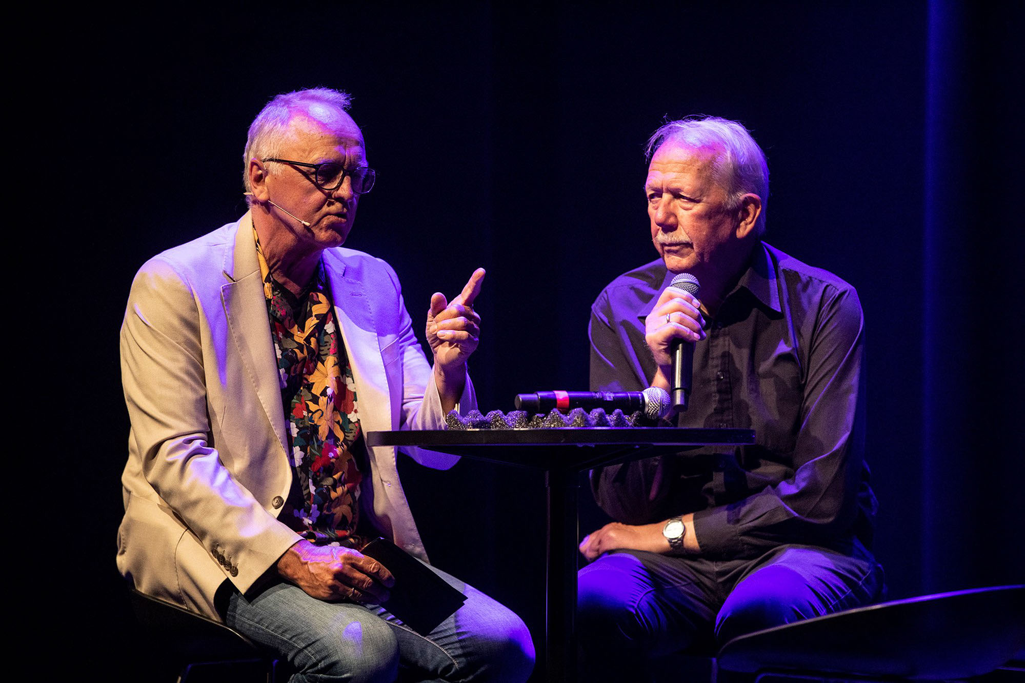 Kjell, Rolf og Erik blir intervjuet fra scenen